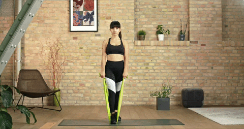 Per sfruttare al meglio le enormi potenzialità offerte da questo pratico strumento da fitness potrai mettere in atto i seguenti esercizi, (sempre tenendo conto del tuo livello di preparazione e aver scelto, di conseguenza, l’elastico più adatto):